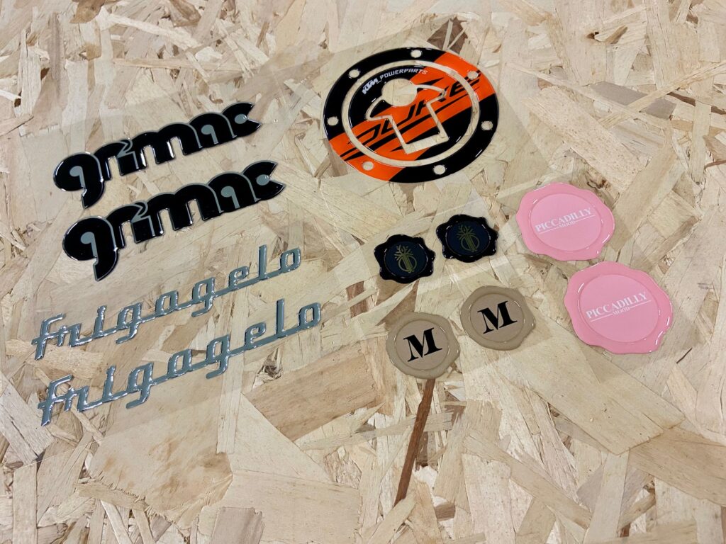 This is the ideal solution for those looking for depth and strength. A drop of transparent polyurethane resin is deposited on the graphic, creating a protective dome that acts as a magnifying glass.
